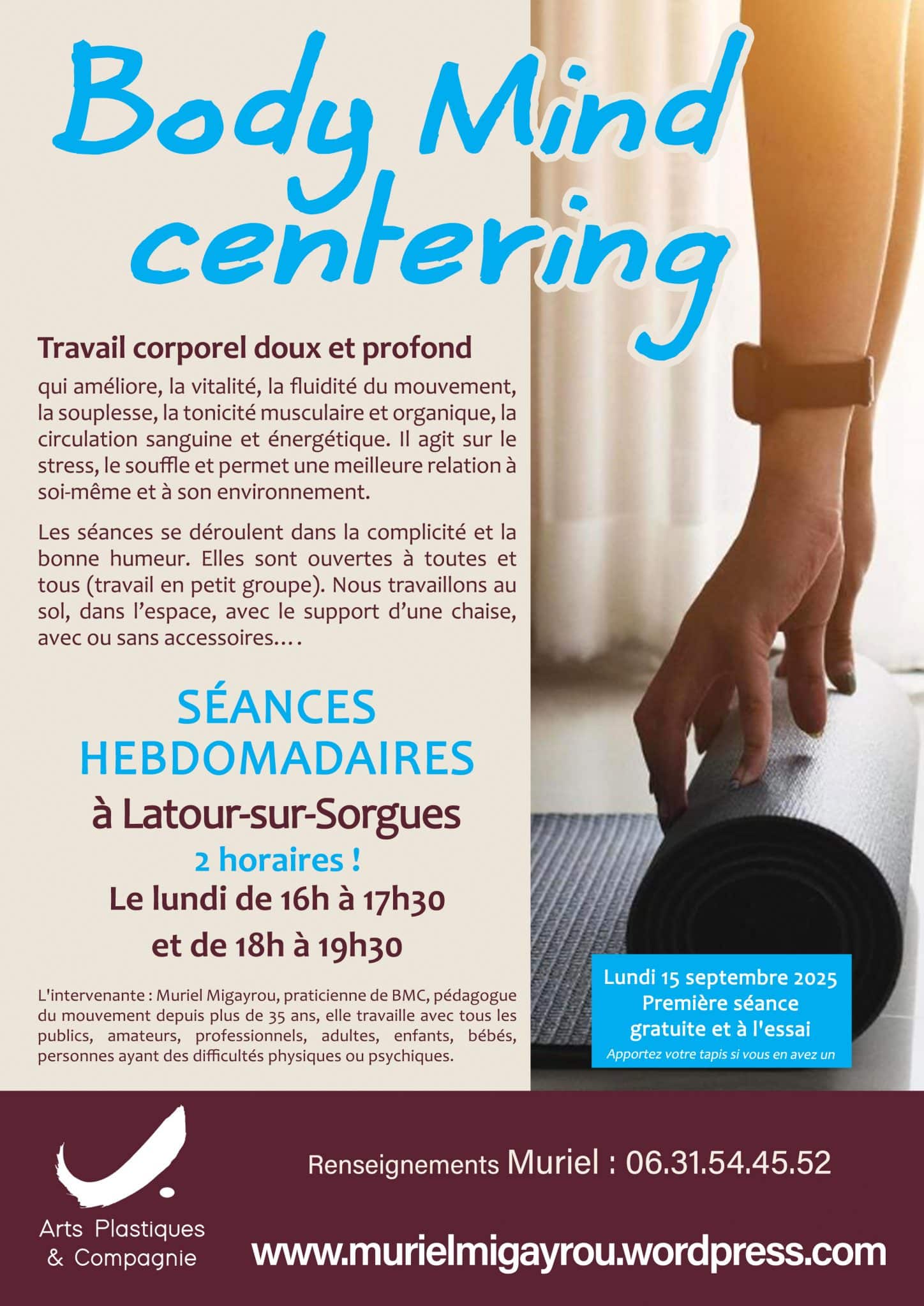 L’association Arts plastiques et compagnie propose : Body Mind Centering® (séances hebdomadaires) Ce travail corporel doux et profond renforce la fluidité du mouvement, la souplesse, la tonicité musculaire et organique, une meilleure relation à soi même et à son environnement. Chaque séance est un voyage au cœur du corps qui permet, grâce à des mouvements, des […]