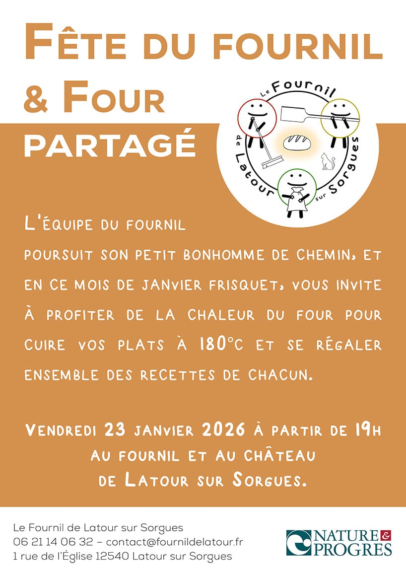 Venez partager un moment convivial ! L'équipe du fournil poursuit son petit bonhomme de chemin et vous invite à partager la chaleur du four pour cuire vos plats à 180°C et se régaler ensemble des recettes de chacun. Vendredi 23 janvier 2026 à partir de 19h au fournil et au château de Latour sur Sorgues. Plus […]